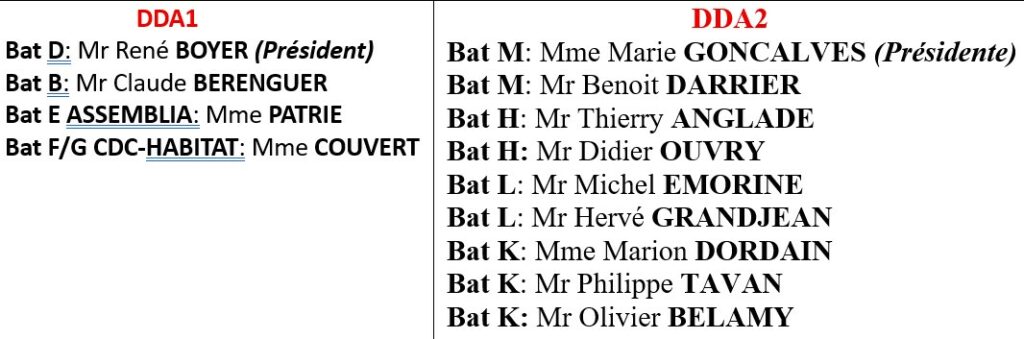 Composition 2024/2025 des Conseils Syndicaux du DDA